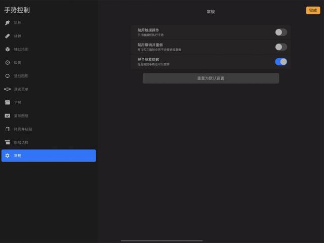 当你完成在 手势控制 面板的设置,点击 完成 即能返回至你的画布界面。