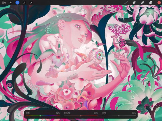 向右滑动让图层色调往红、绿、蓝色变化;往左滑动则会偏向青色、紫红色和黄色。