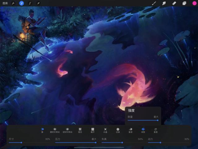调整 Apple Pencil 的压力设置来完全掌控你的液化效果。