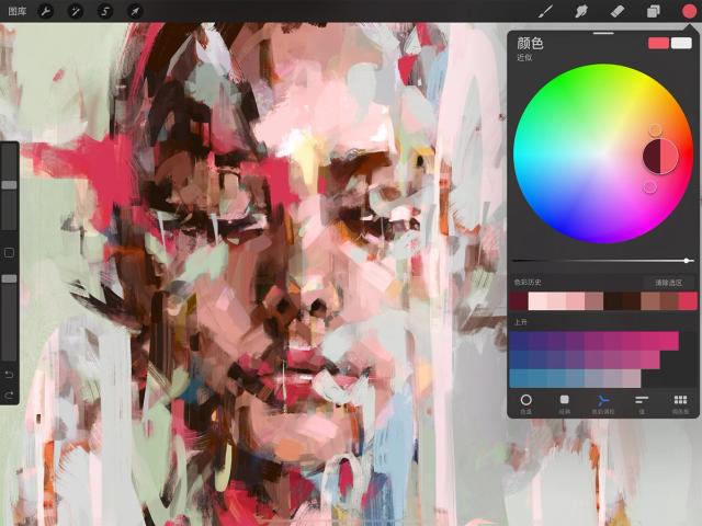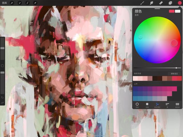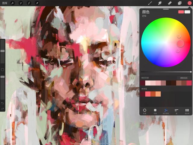 点击任一标圈来选取该颜色,自此你即能使用该颜色创作,或点击“色彩调和”提供给你的颜色,并丢放至调色板中创造你的个人配色。