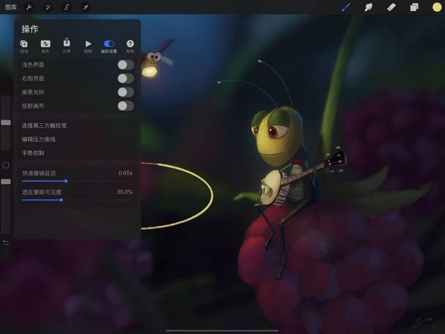 在设置中你能将几种使用触碰或 Apple Pencil 的快捷设置与速创形状的功能结合,让你的创作手感舒畅、随心所欲。