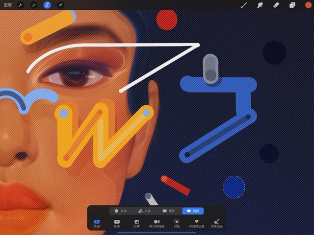 Procreate 提供这些简便选取工具,在你想简易选取时轻松完成操作。
