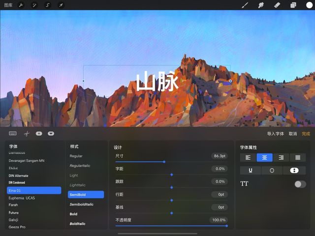 清晰俐落的矢量文本、一系列内建字体、专业级文本编辑功能以及让你导入字体的自由度,Procreate 的文本工具让你发挥无穷的设计灵感。