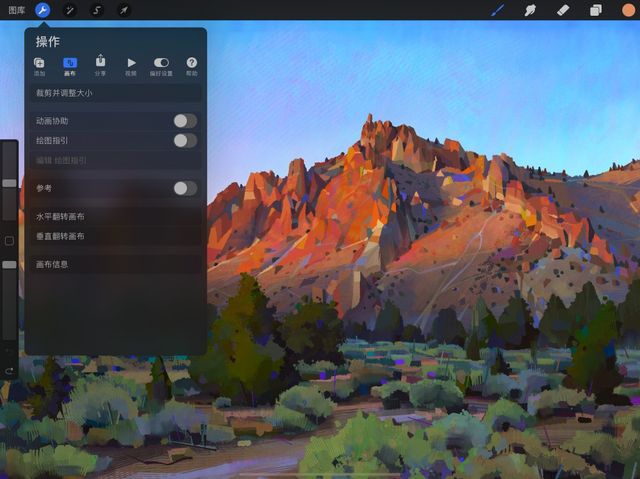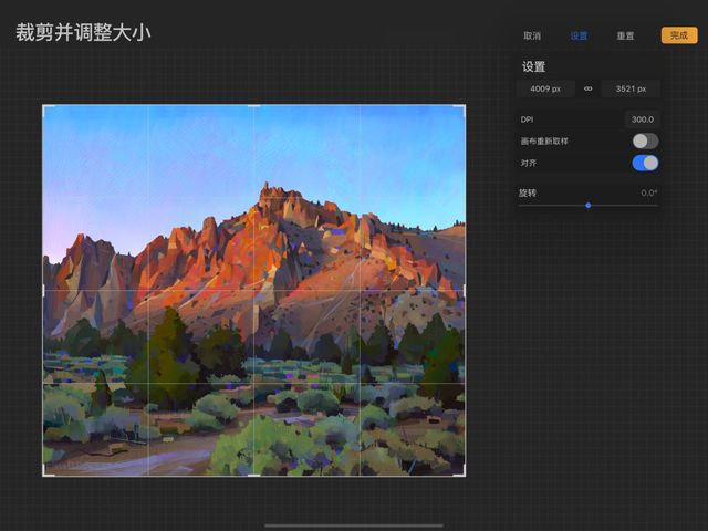 轻点 操作 > 画布 > 裁剪并调整大小 来调整画布大小或不同形状。