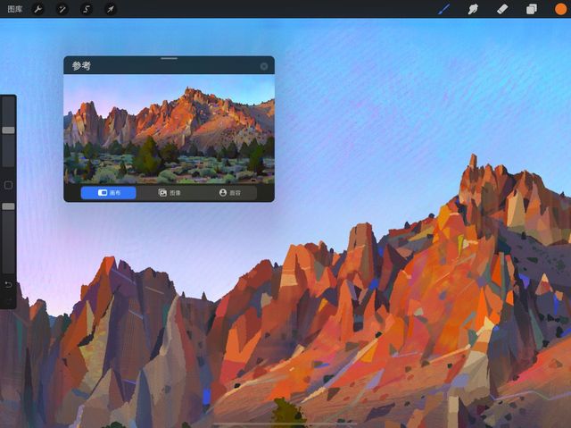 许多创作者会在创作时于画布上使用图像或照片作参考,相同的道理,图像 按钮让你从 照片 应用导入一个图像作为参考。