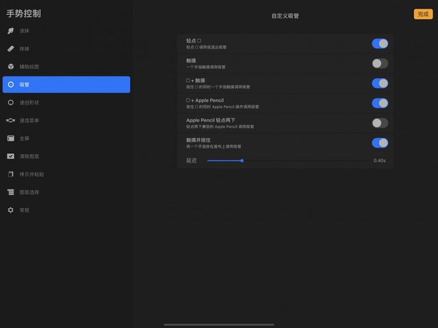 当你完成在 手势控制 面板的设置,轻点 完成 即能返回至你的画布界面。
