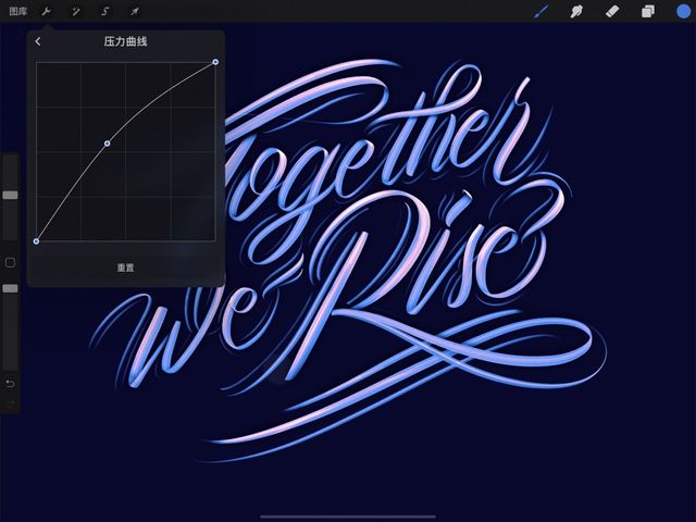 往下阅读更多关于如何调节 Procreate 的整体压力曲线;你也可以在 画笔工作室 中分别编辑各支笔刷的压力曲线。