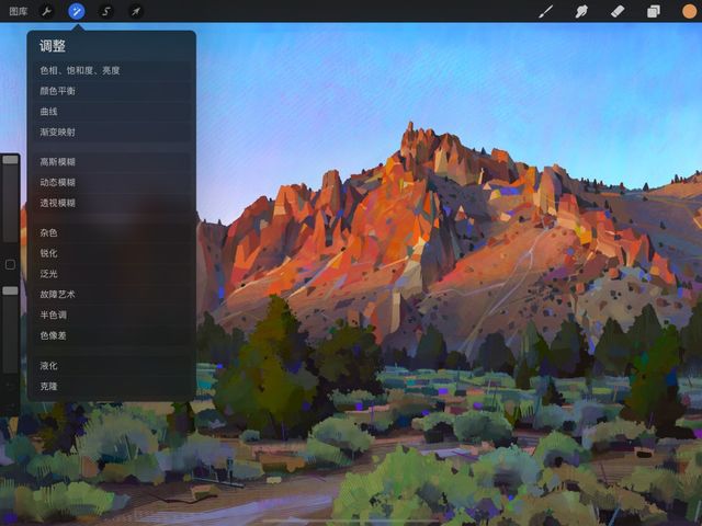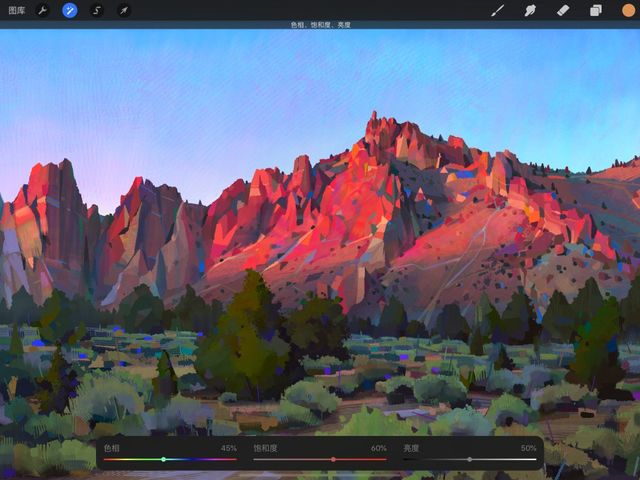 轻点调整 > 色相、饱和度和亮度 进入 HSB 界面。