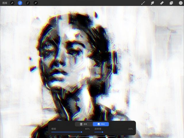 在 移动 模式中触摸并拖动即能控制你的色像差滤镜中,红色与蓝色通道的偏移距离以及你想让颜色偏移的方向。