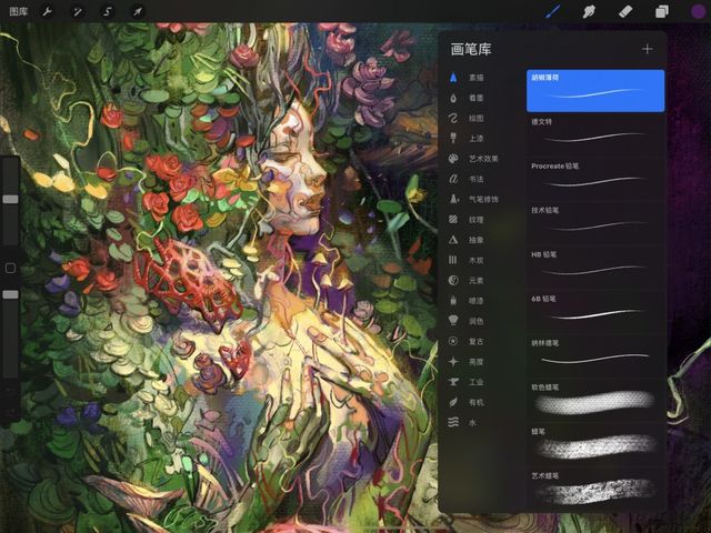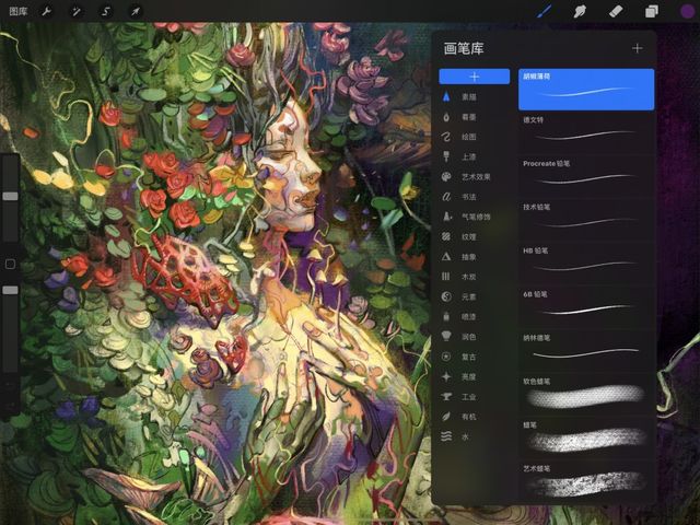编辑、管理、分享并探索 Procreate 自带的丰富缤纷笔刷世界。