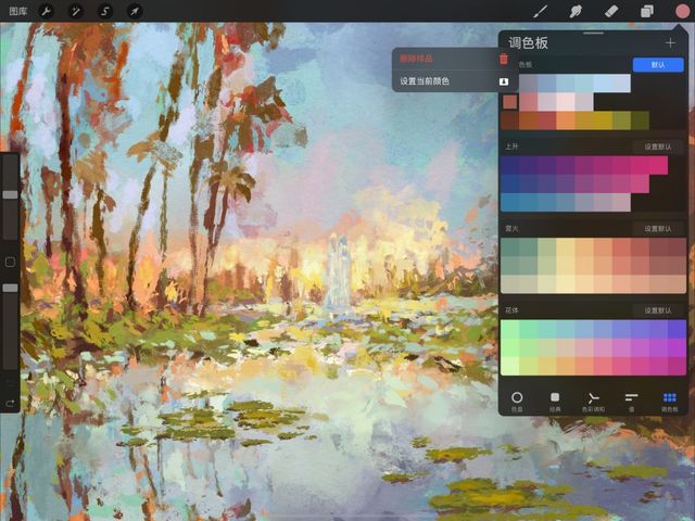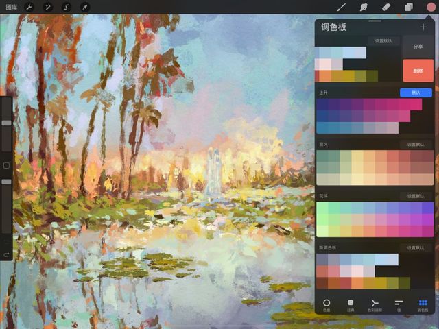 在调色板库中用单指在你选定调色板上向左轻滑,即会看到 删除 指令按钮。