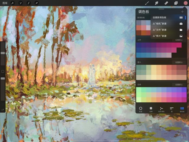 打开 色彩面板 并轻点 调色板 按钮以显示你的所有调色板。轻点调色板界面右上角的 + 图标并选择 从“相片”新增。