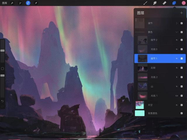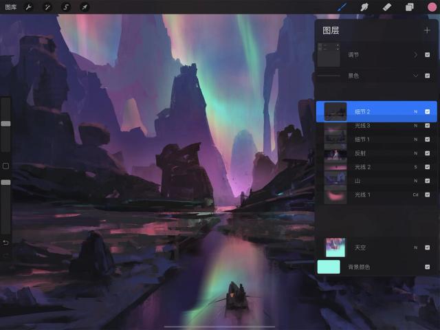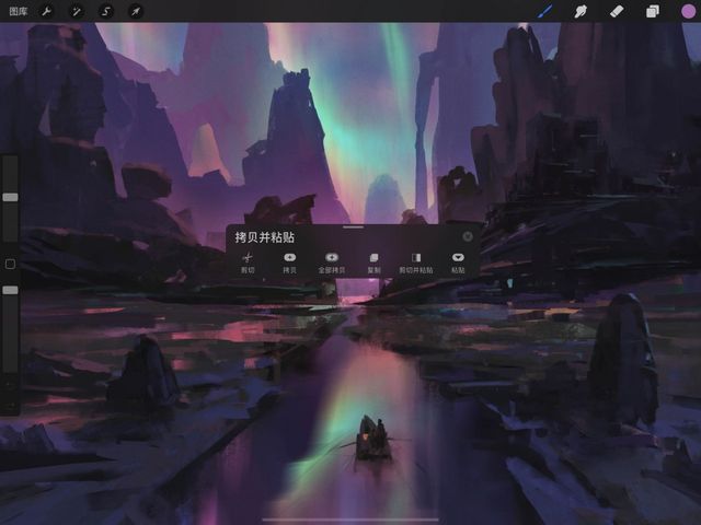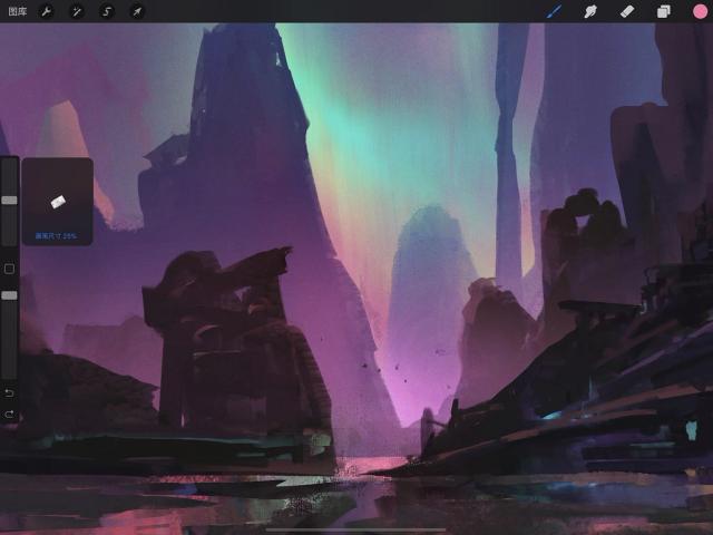 当你想要让界面更干净好让你专心创作,用四指轻点屏幕即可呼唤 全屏 模式。界面将会滑动消失,让你的画布一览无遗。