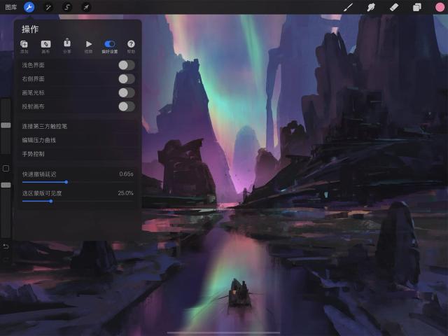 手势控制面板让你变更 Procreate 中多种工具的快捷设置。