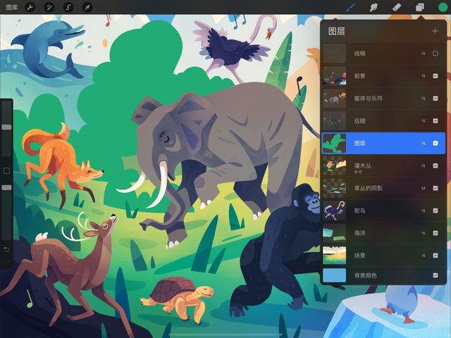 在设置中你能将几种使用触碰或 Apple Pencil 的快捷设置与 清除图层 的功能结合,让你的创作流畅、随心所欲。