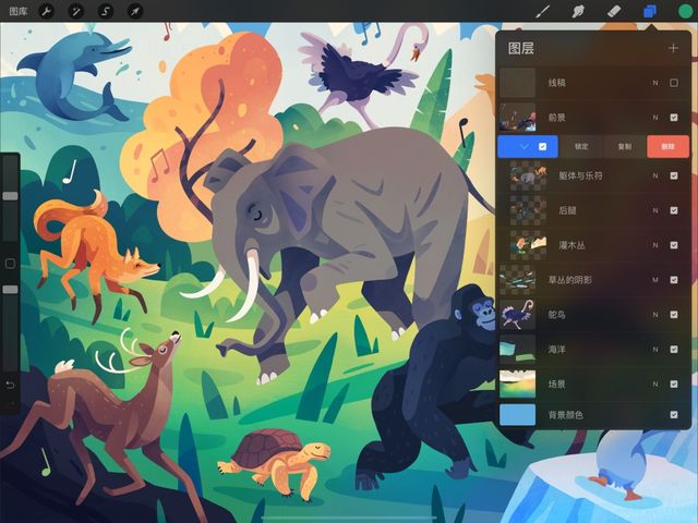 在你的指尖之间用触摸或滑动手势进行移动、锁定、拷贝或删除等最常用的图层操作。