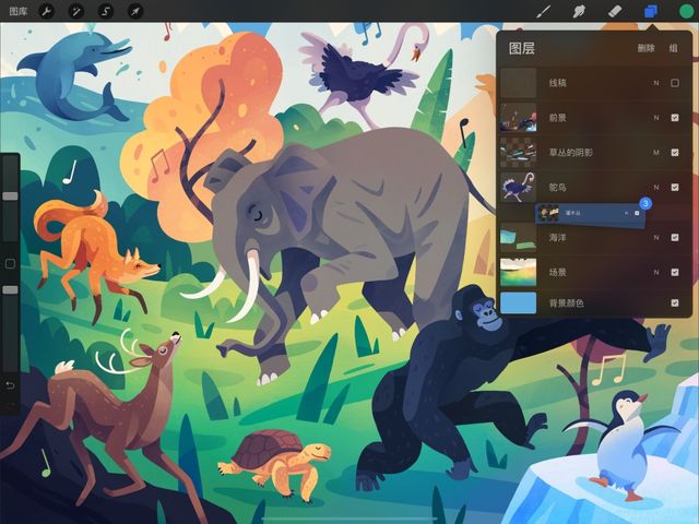 轻点并长按一个图层或图层组即可拖动,移动上下排序后,放开手指就会将图层放置在新序列中。