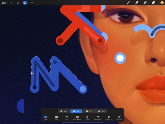 依照你接下来想进行的操作,Procreate 提供几种方法让你完成手绘选取工具。