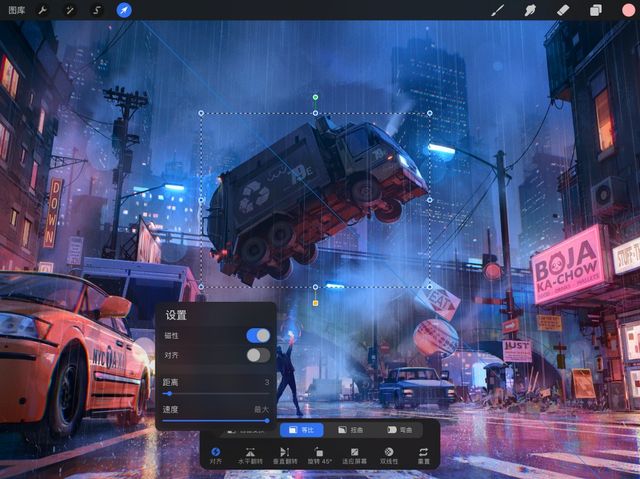 轻点位于变换工具栏目的 对齐 按钮来调整功能开关。