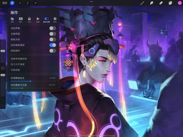 手势控制面板让你变更 Procreate 中多种工具的快捷设置。