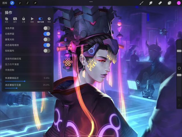 深色界面以沉稳的炭灰色为底、让你保持对画作的专心一致;浅色界面能在明亮工作环境下提供较高对比度的视觉效果。