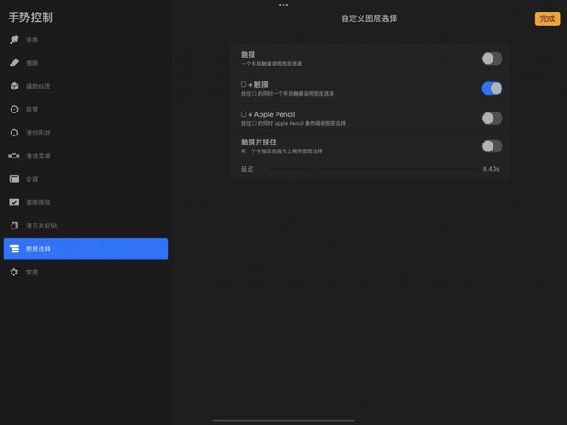 单指右滑即可选定次要图层组,这个操作会应用在该组中的每一个图层上。