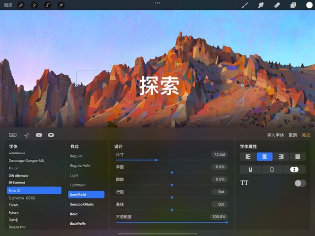 清晰俐落的矢量文本、一系列内建字体、专业级文本编辑功能以及让你导入字体的自由度,Procreate 的文本工具让你发挥无穷的设计灵感。