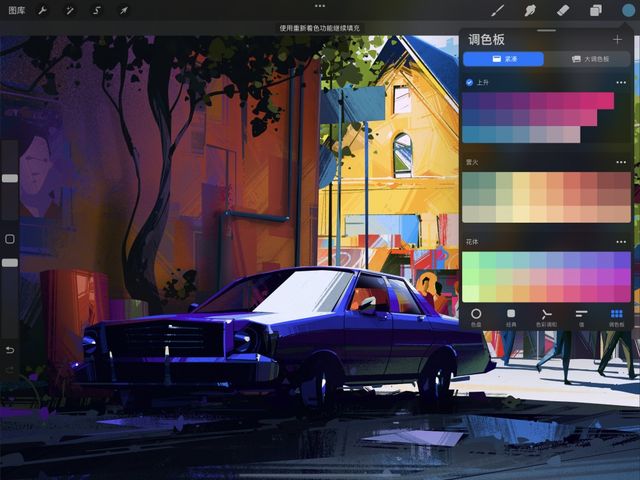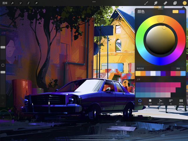Procreate 提供了多种调色界面来配合你的创作,为你呈现多元的选择、保存和调制色彩的方法。