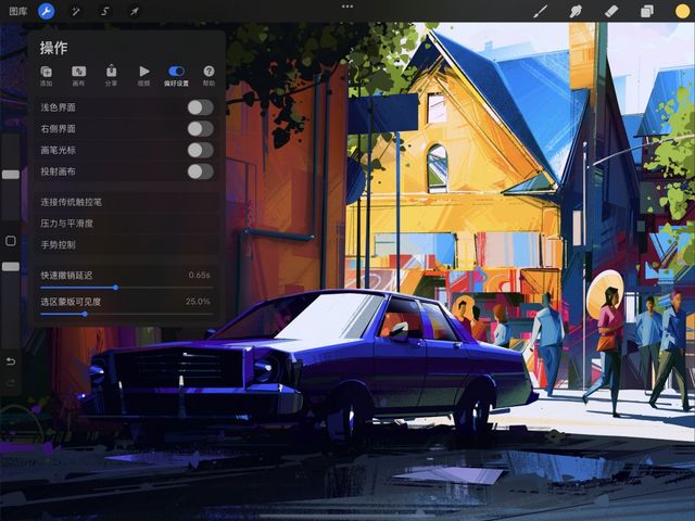 在设置中使用触碰或 Apple Pencil 的快捷设置与吸管的功能结合,让你的创作手感舒畅、随心所欲。
