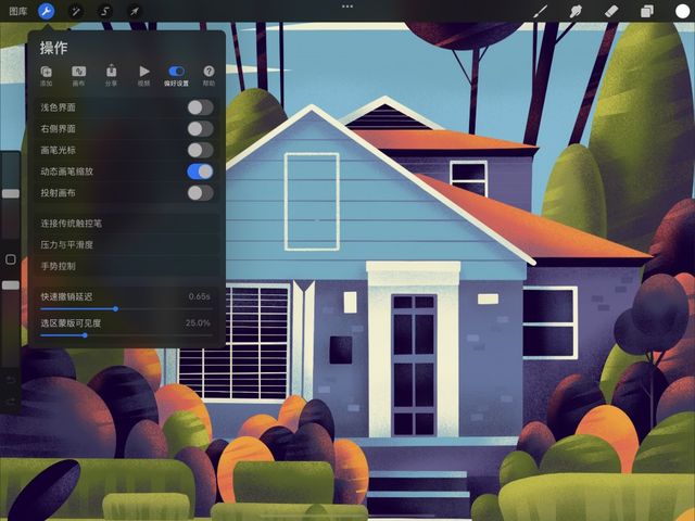 在设置中你能将几种使用触碰或 Apple Pencil 的快捷设置与速创形状的功能结合,让你的创作手感舒畅、随心所欲。