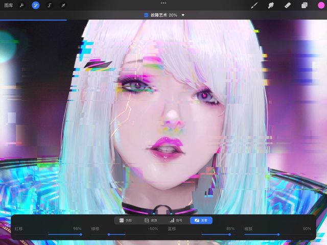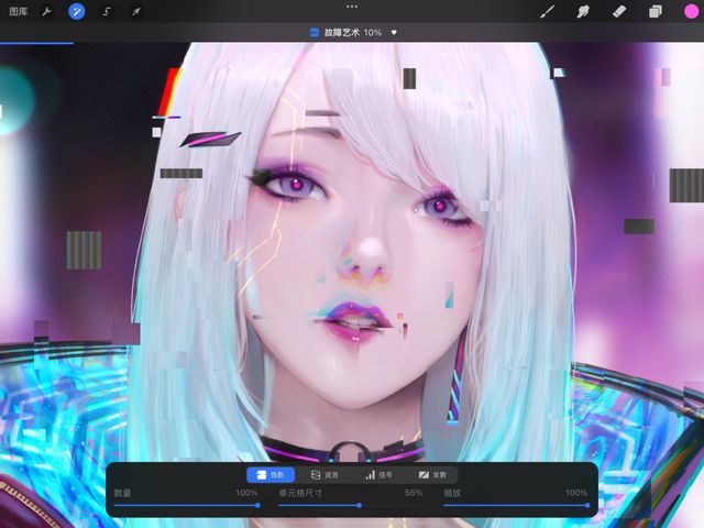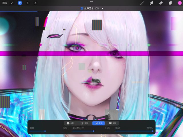 Procreate 共有 4 种不同故障艺术滤镜效果: