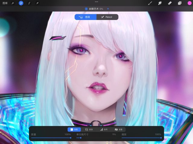 轻点 调整 > 故障艺术 > 轻点 图层 或 Pencil 以进入 故障艺术 滤镜界面。