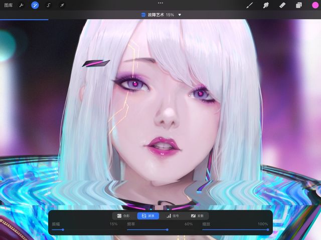 你能通过 波浪 的 振幅、频率 和 缩放 按钮来微调你想要添加的故障效果多寡。