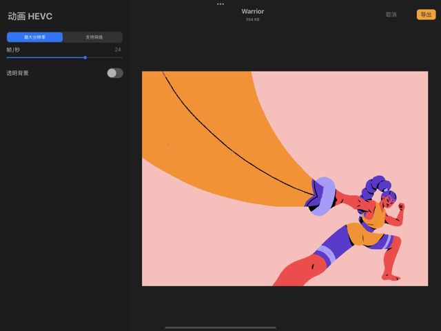 轻点 操作 > 分享 > 动画 HEVC 以进入 动画 HEVC 界面。