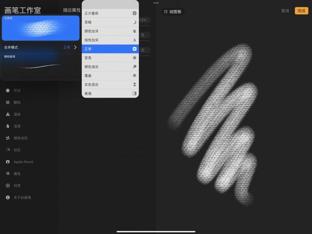 轻点任一个 合并模式 即在绘图板上看到实时变化效果;或到 混合模式 章节了解更多。