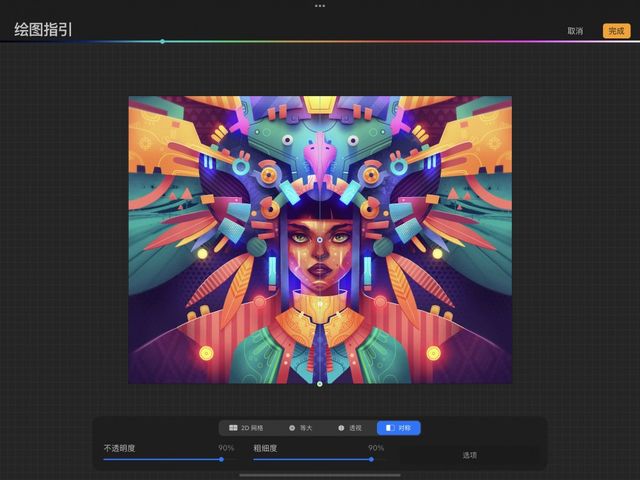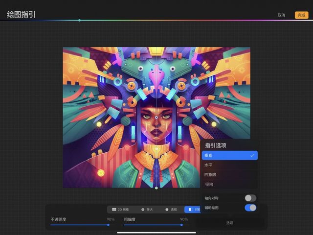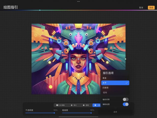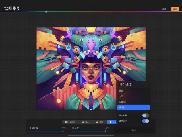 辅助绘图 让你在画布的笔划依照你设置的指引线对齐贴合;在对称模式中,辅助绘图功能默认启用。