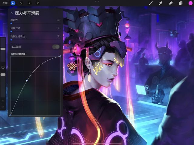想要完整发掘 Apple Pencil 的功能,你可以使用 Procreate 的自定义 应用压力敏感度 来配合你使用 Pencil 或触控笔的手感。