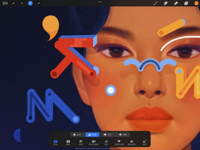 选取工具让你能在作品上针对某特定部分进行一系列编辑,你将可以对选取区域绘画、涂抹、使用橡皮擦、填充上色、变换变形等操作而不影响选区外的部分。