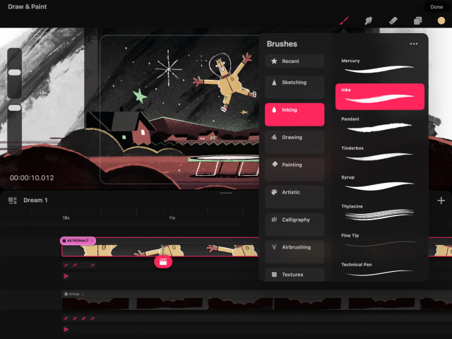 Start drawing right away with these essential drawing and painting tools in Procreate Dreams using hundreds of brushes covering a wide range of artistic mediums.