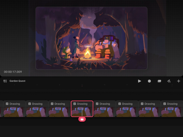 Tracks contain the content used to create your movie. This can be imported content such as images, video, and audio, or content created in Procreate Dreams such as text and drawings.