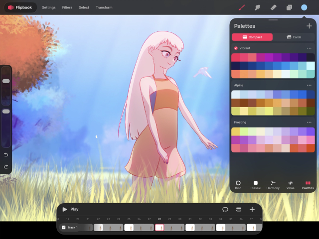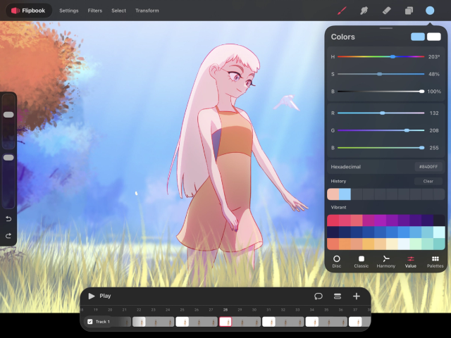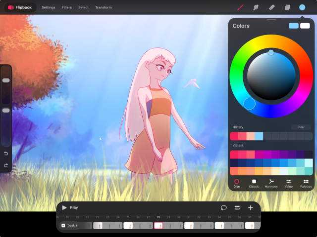 Procreate Dreams makes use of Procreate's proprietary Color Disc as its primary way to select color.