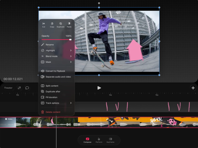 You can import content into Procreate Dreams directly from Files or Photos using the Create menu , or by dragging and dropping it from another app.
