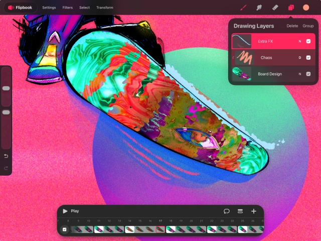 To delete multiple layers, swipe left on swipe right on two or more of the layers you want to remove. A delete option will then appear at the top of the Drawing Layers panel.