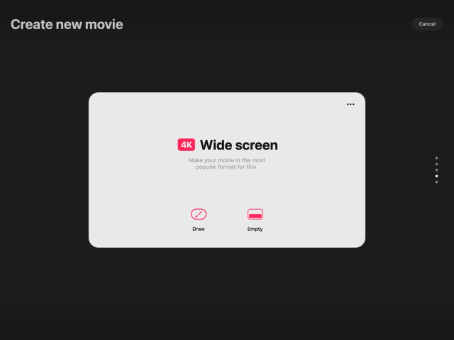 Each screen size can be set to four different resolutions with 4K being the default. To select the resolution of your movie, tap the 4K icon and choose from the resolution options that appear in the context menu.