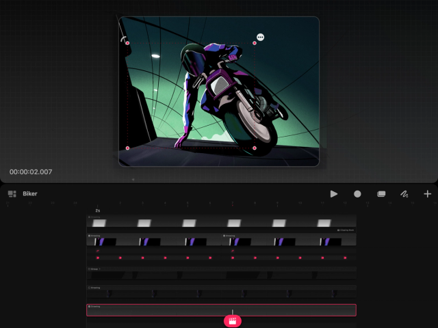 Each keyframe will appear on a keyframe track under its associated content. Tap an individual keyframe to view its parameters.