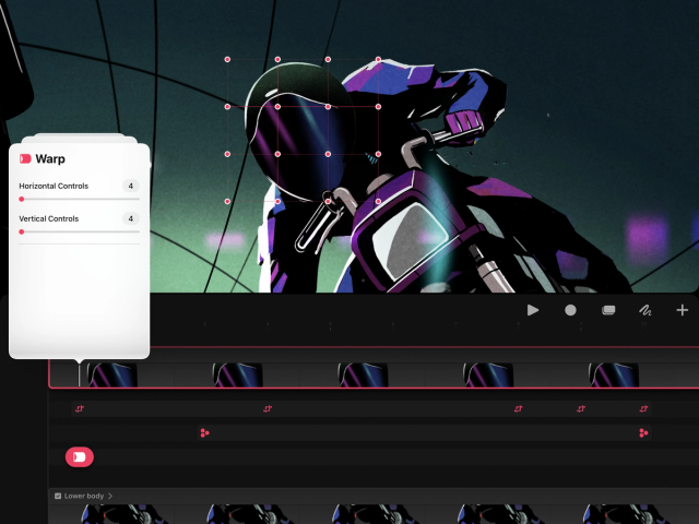 Set a Warp keyframe, then drag any node in the warp mesh to warp your content.