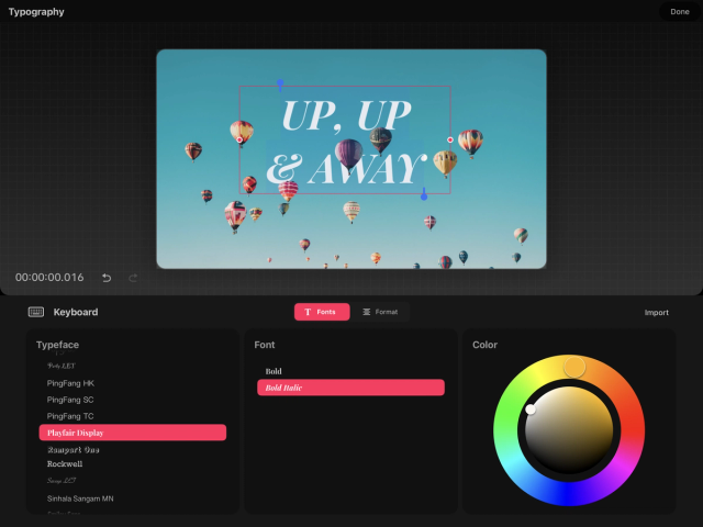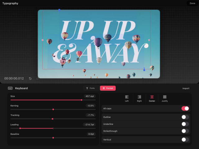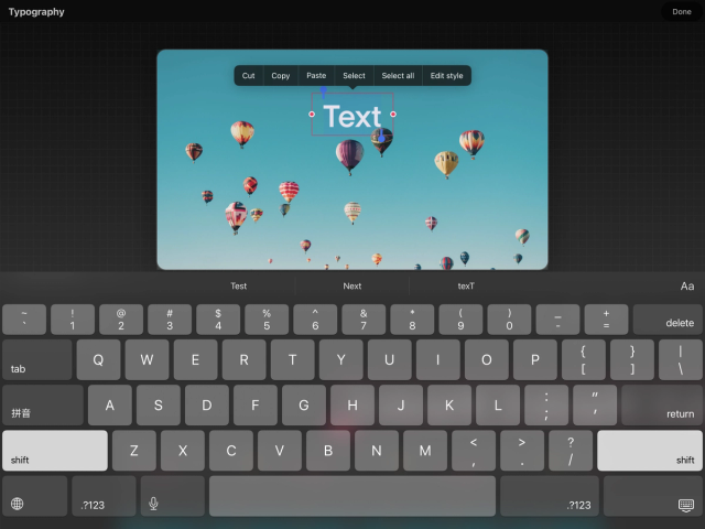 Tap the Keyboard at any time to adjust or add more type to your text box.