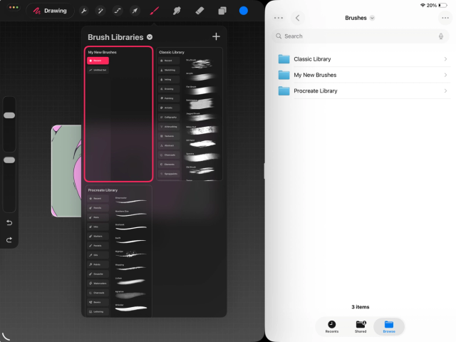 If you had custom brushes in Procreate Dreams before updating, these will be available in your 'Classic Library'.