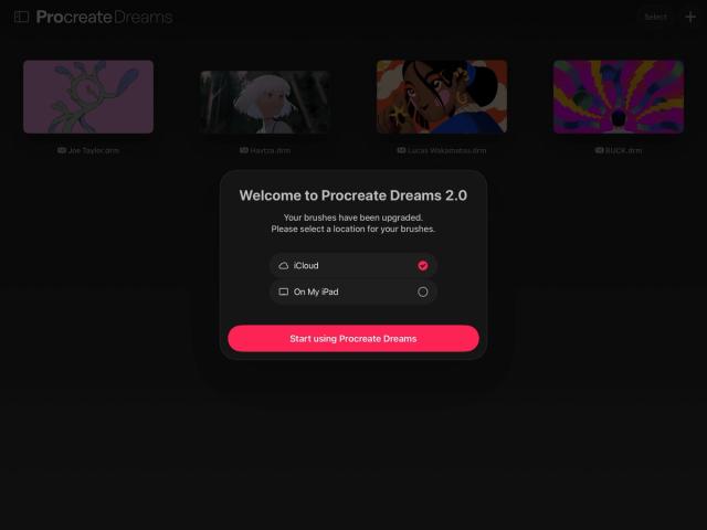 If you are installing a completely fresh version of Procreate Dreams, you won't need to upgrade your brushes, and they will be stored on iCloud Drive by default (or On My iPad if you don’t have iCloud enabled). Jump straight to the ' Using Brushes ' section to see how to use the brushes inside the app, or the ' Brush storage ' section to see how to locate and store brushes in the Files system.