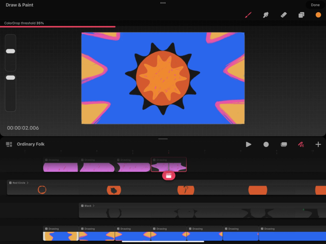 そのまま指を左または右にドラッグして ColorDrop のしきい値を調整します。左にドラッグすると、しきい値が大きくなり、右にドラッグすると小さくなります。